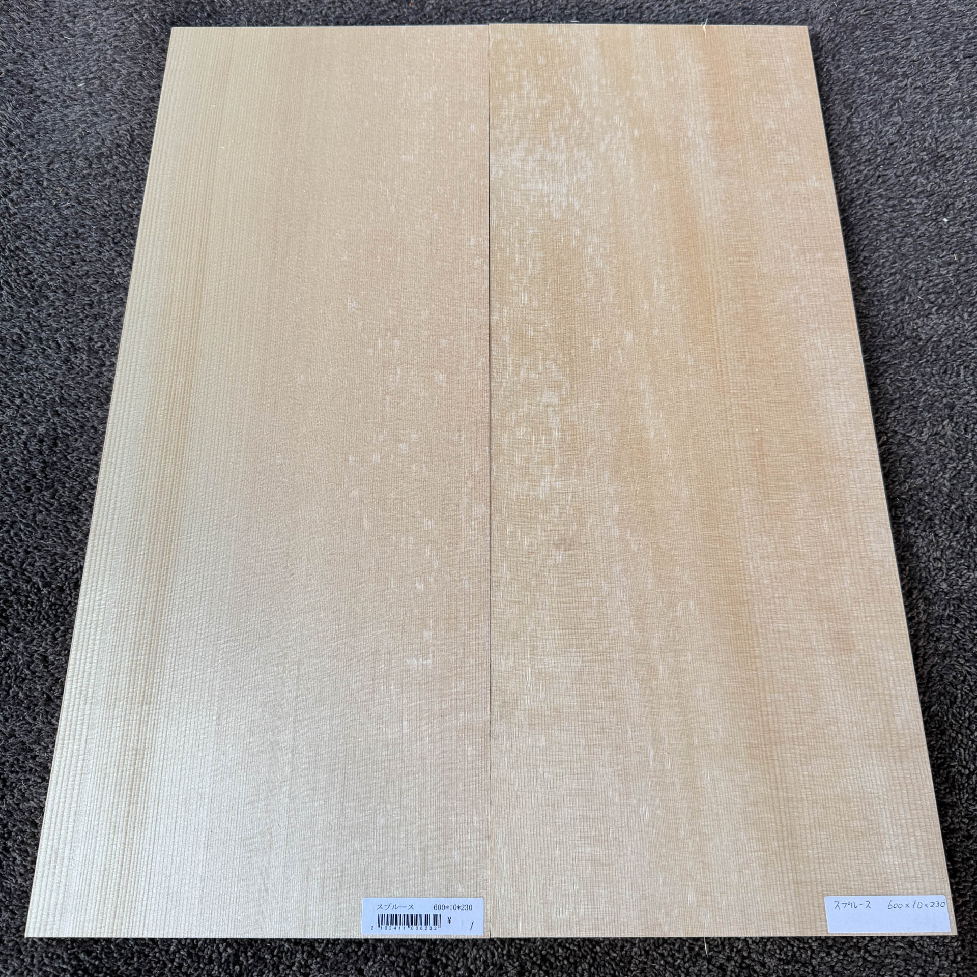 スプルース楽器材 ギター トップ用 プレミアムサイズ スプルース 長さ600mm×厚み10mm×巾230mm